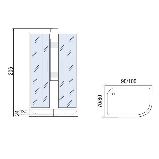Душевая кабина мономах Б/К 90/70/24 МЗ R , б/крыши, 900*700*2060, асимметричная