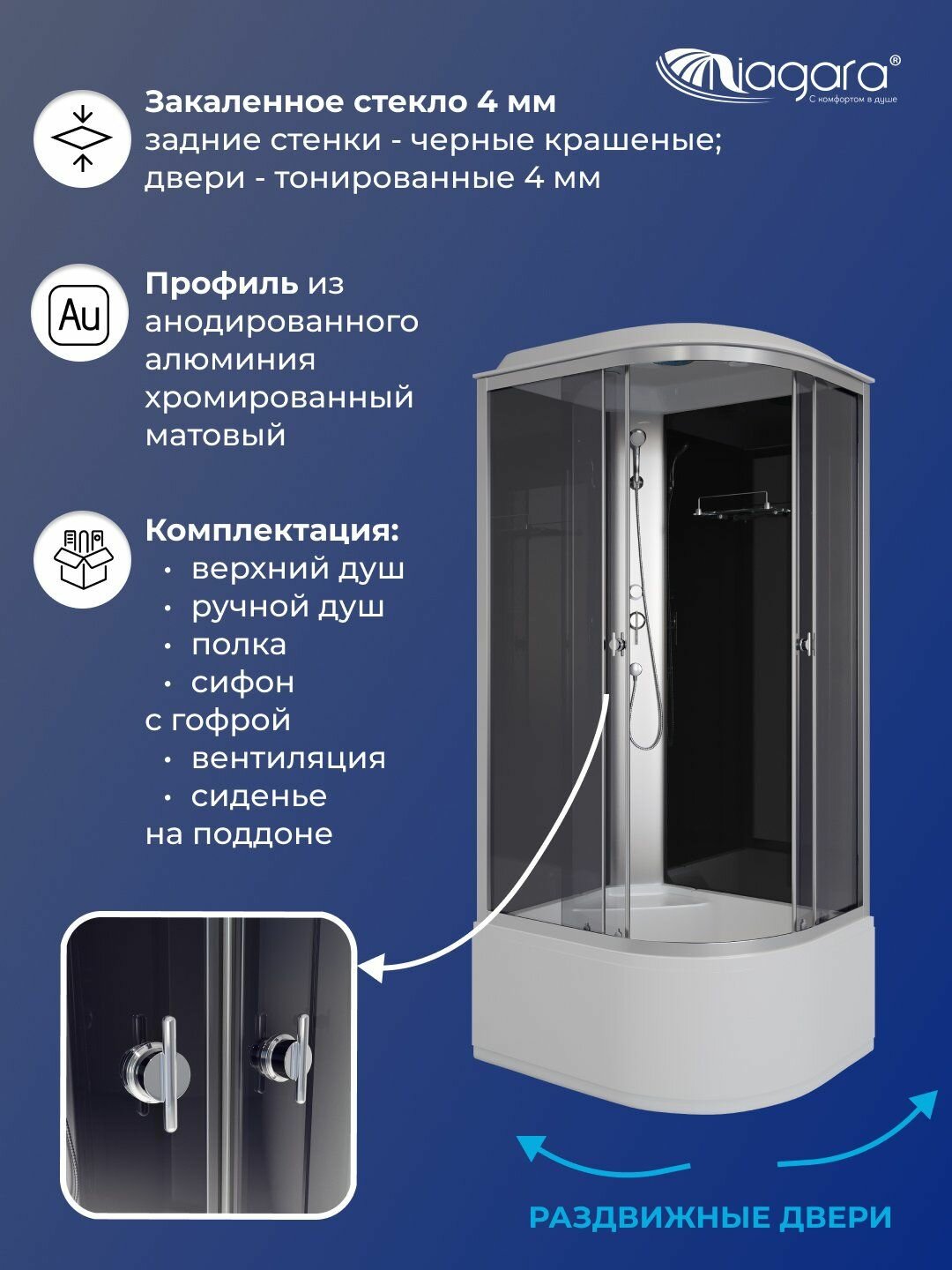 Душевая кабина Niagara Eco 90x70 E90/70/40R/TN/BK поддон высокий, стекло тонированное, профиль серебро