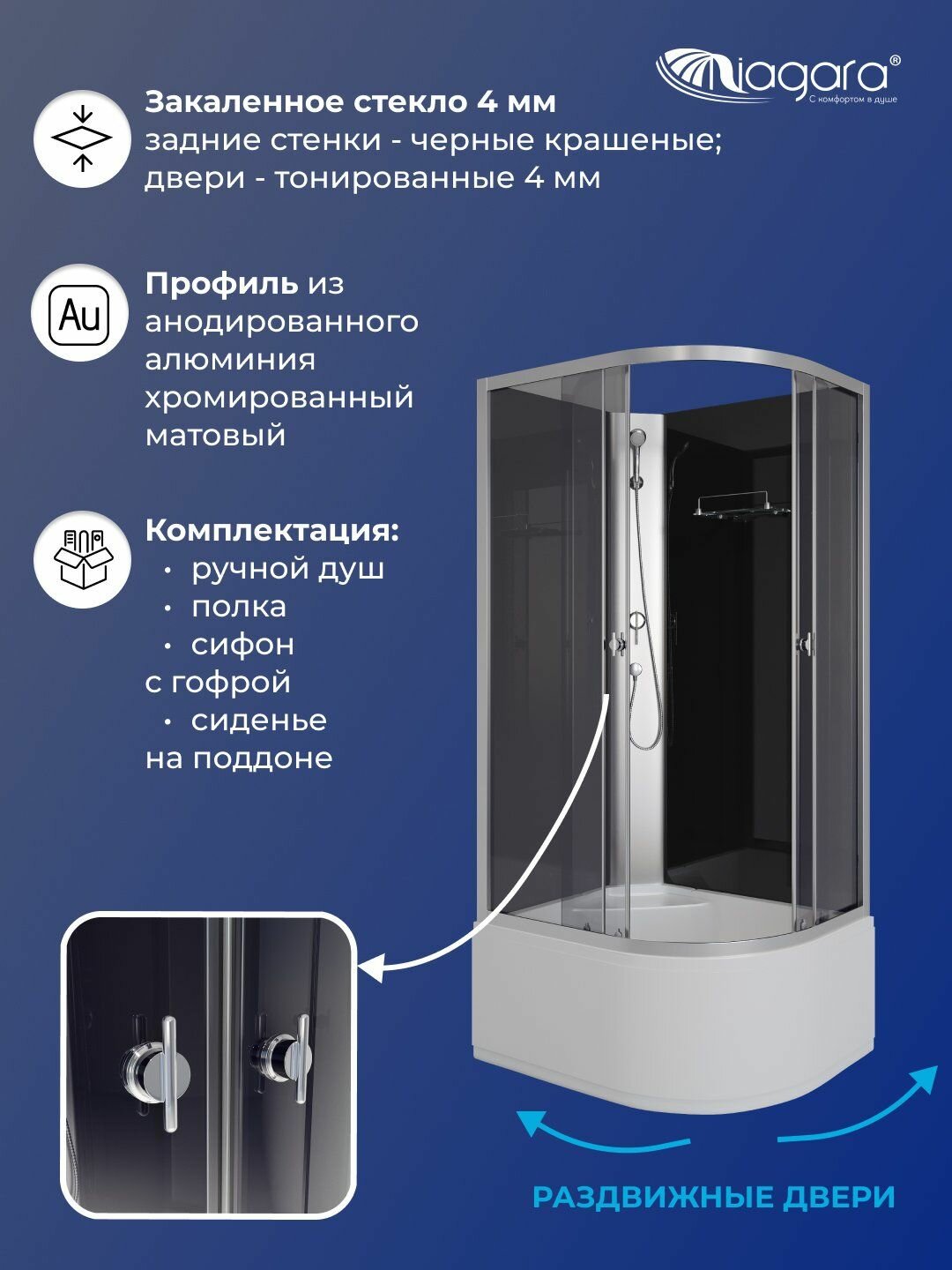Купить Душевая кабина Niagara Eco 90x70 E90/70/40R/TN/BK поддон высокий, стекло тонированное, профиль серебро