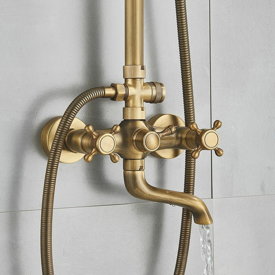 Душевая стойка с тропическим душем, смесителем и ручной лейкой в ванную, латунная душевая система для ванны, гарнитур для душа, универсальный комплект для душевой кабины, ретро, античная бронза