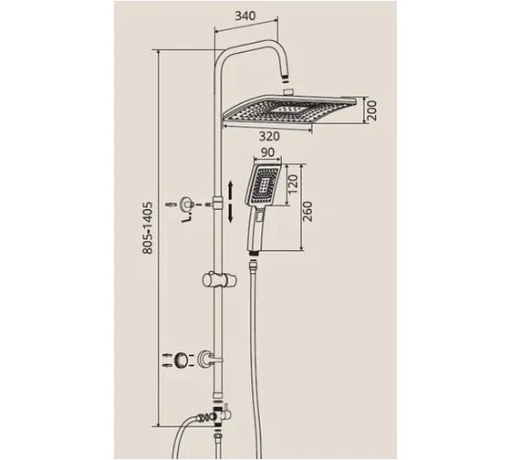 | Комплектация | верхний душ / держатель лейки / дивертор / душевая стойка / лейка / настенный держатель / прокладки / ручной душ / шланг |