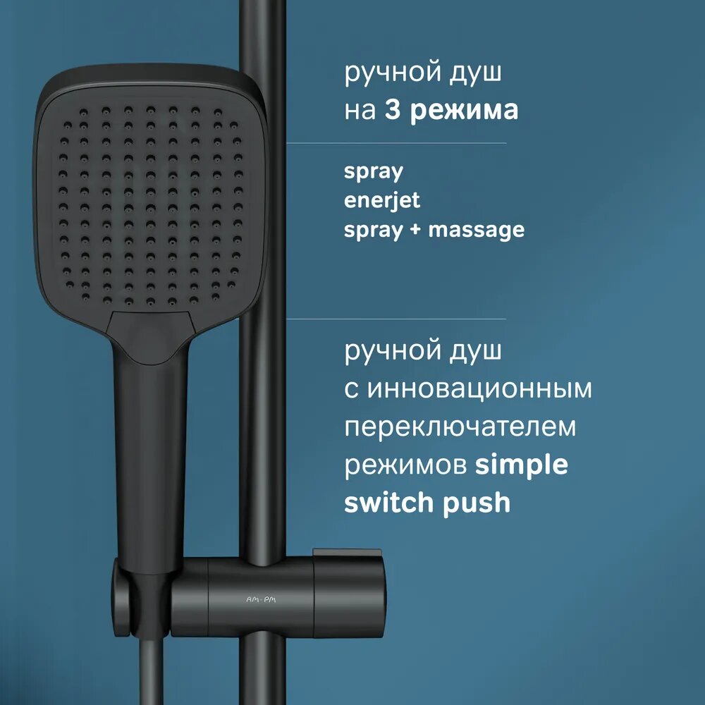 Душевая система AM.PM Func F078F322 с термостатом Черная матовая