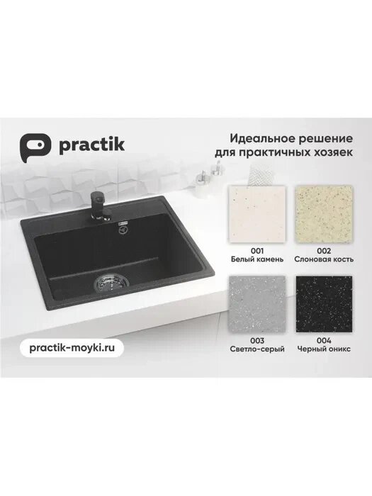Мойка Practik PR-М 565, искусственный мрамор, черная, 56,5x49,5 см