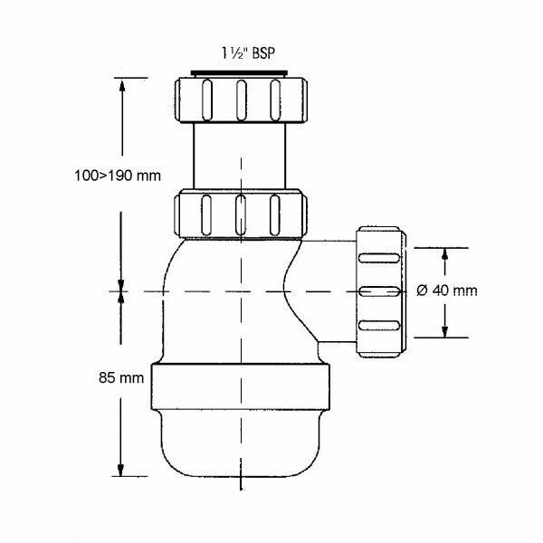 McAlpine Сифон бутылочный 1 1/2"х40 мм без выпуска, выход компрессионный D=40 мм Mrsk2-nw .
