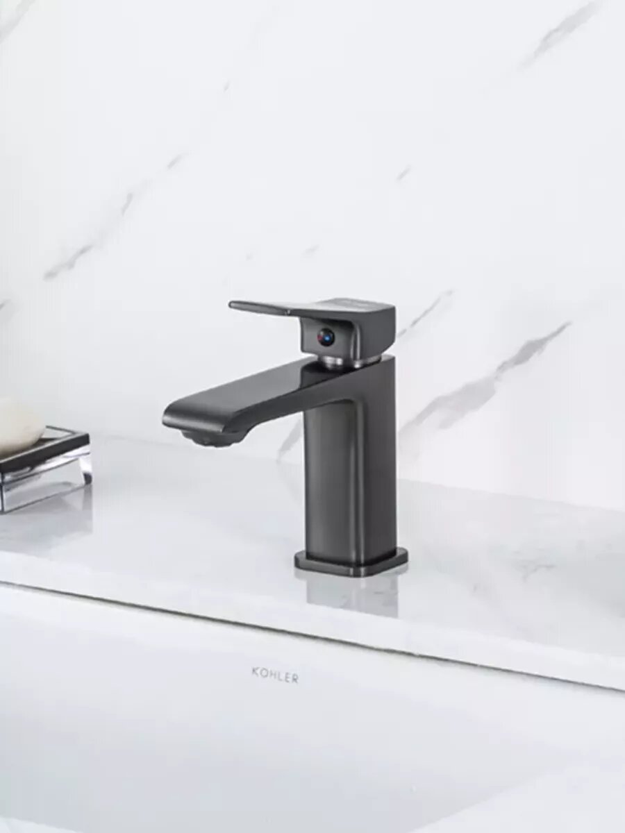 Смеситель для раковины FRAP F1084-9 оружейная сталь, однорычажный, короткий литой излив