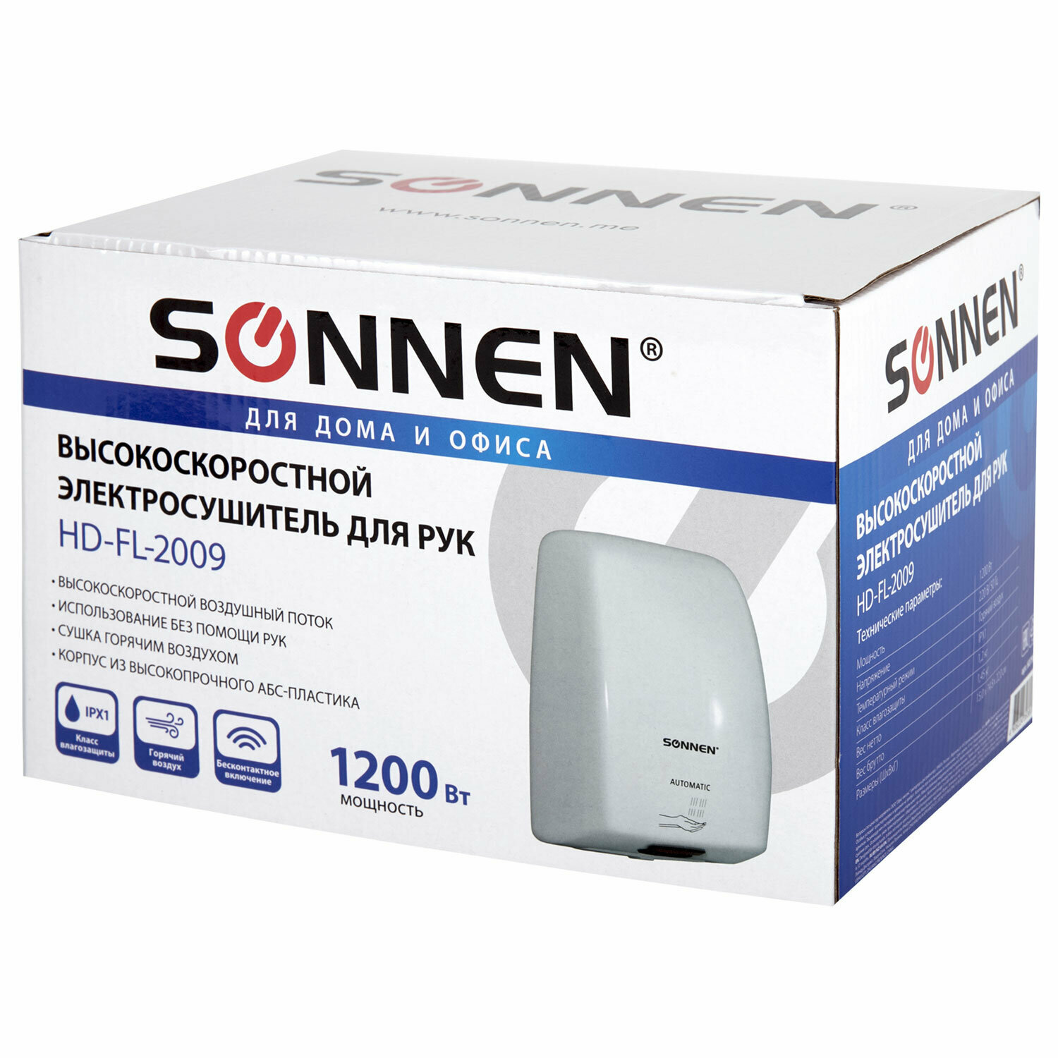 Сушилка для рук Sonnen высокоскоростная для рук HD-FL-2009, 1200 Вт, пластиковый корпус, белая