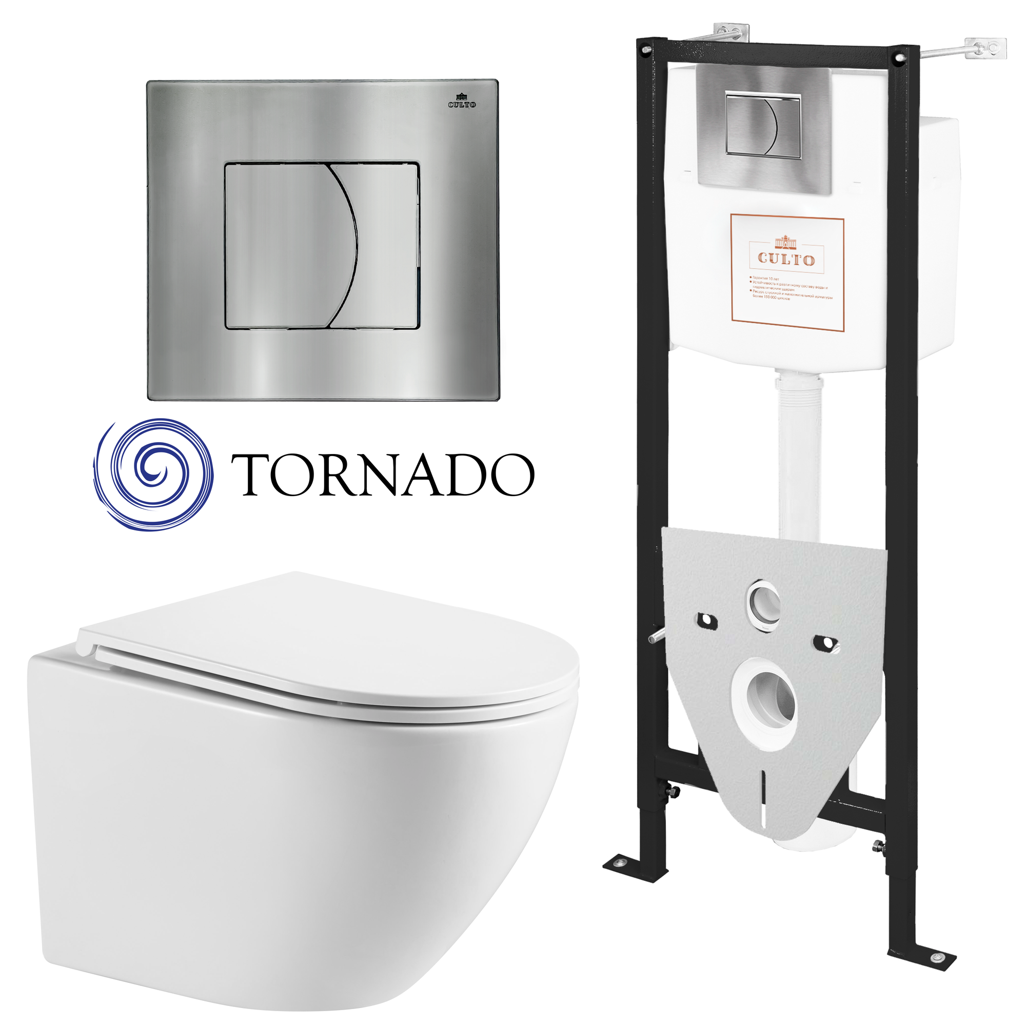 Инсталляция с подвесным унитазом CULTO TOR, с сиденьем микролифт, панель смыва белая. Система смыва Торнадо