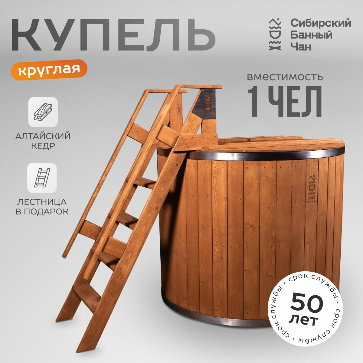 Купель "Сибирская" деревянная с металлической емкостью с лестницей круглая Сибирский Банный Чан