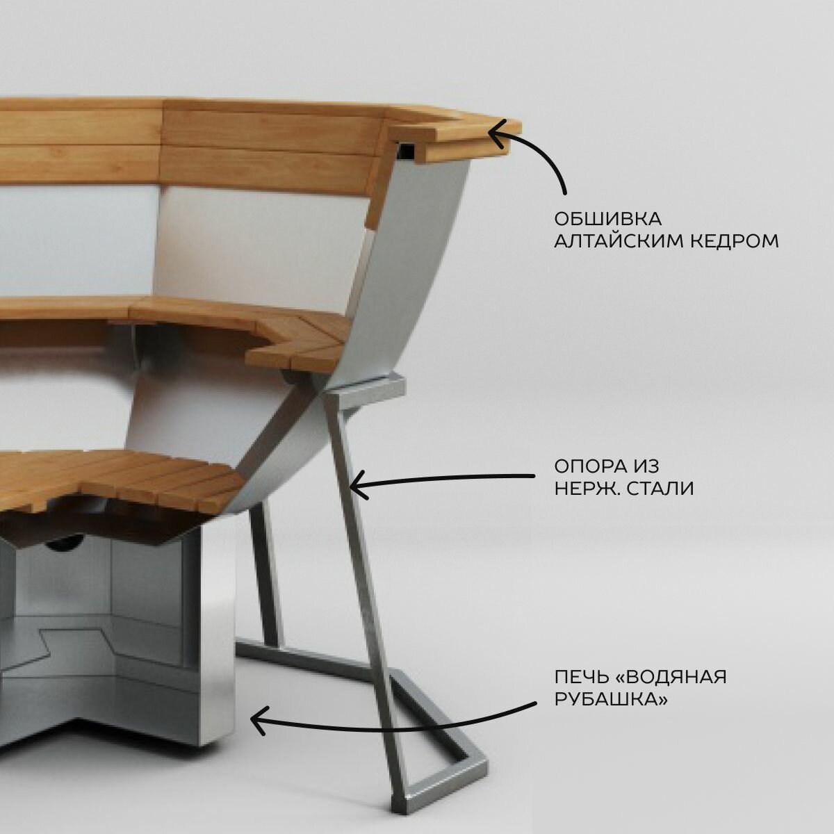 Банный чан 6 человек на опоре с печью "Водяная рубашка"