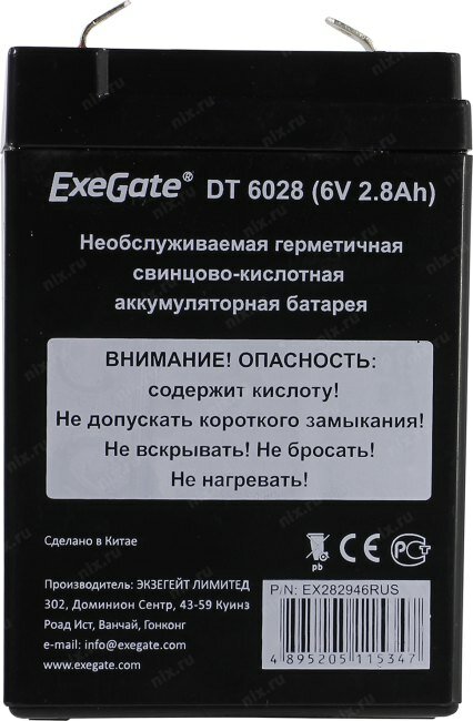 Аккумуляторная батарея ExeGate DT 6028 (6V 2.8Ah), клеммы F1 Ex282946rus интересное: