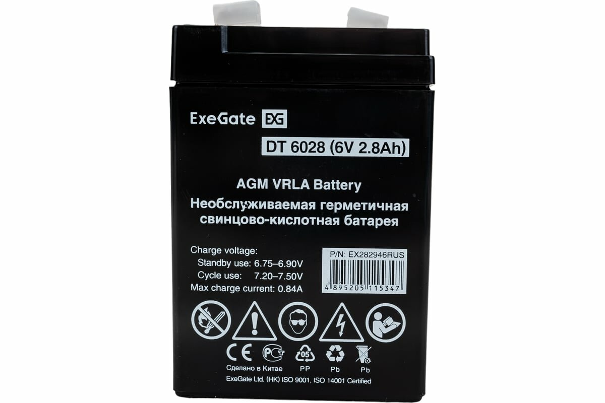 EXEGATE батареи EX282946RUS Аккумуляторная батарея DT 6028 6V 2.8Ah, клеммы F1