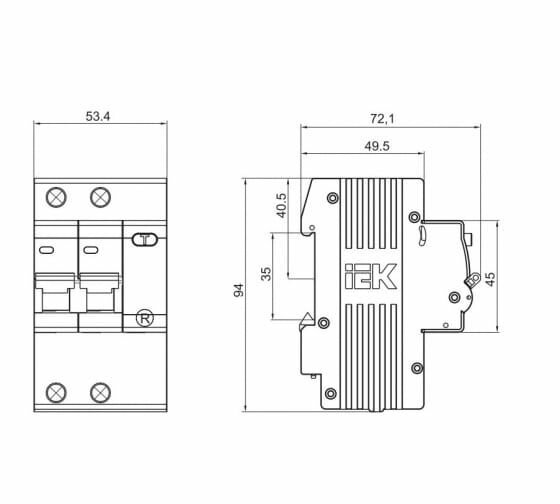 Автоматический выключатель дифферинциального тока IEK АД-12 (MAD10-2-063-C-300) 2П 63А С 300мА 4,5кА