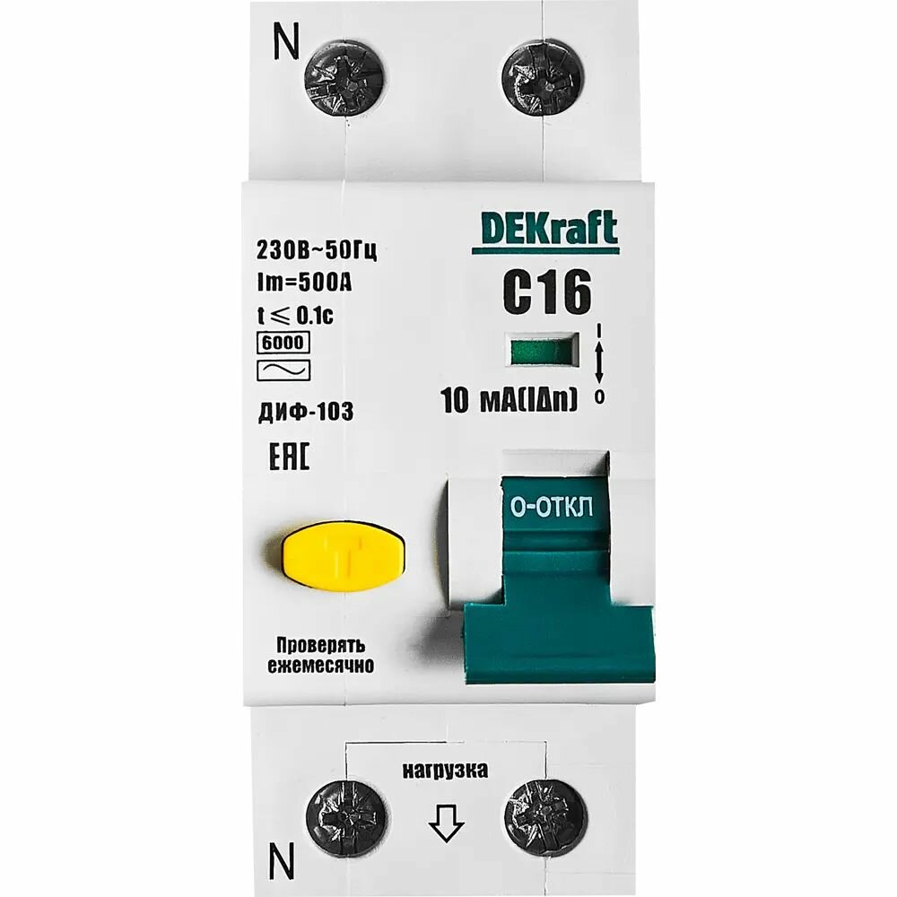 СохранитьАвтоматический выключатель дифференциального тока АВДТ 1Р+N 16А 10мА тип AC х-ка С ДИФ-103 6кА | 16200DEK | DEKraft интересное: