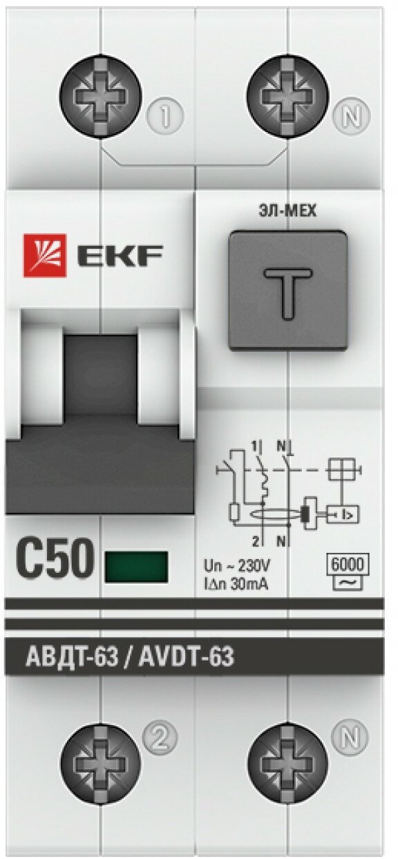 СохранитьДифференциальный автомат АВДТ-63 50А/30мА (характеристика C, эл-мех, тип АС) 6кА EKF PROxima интересное: