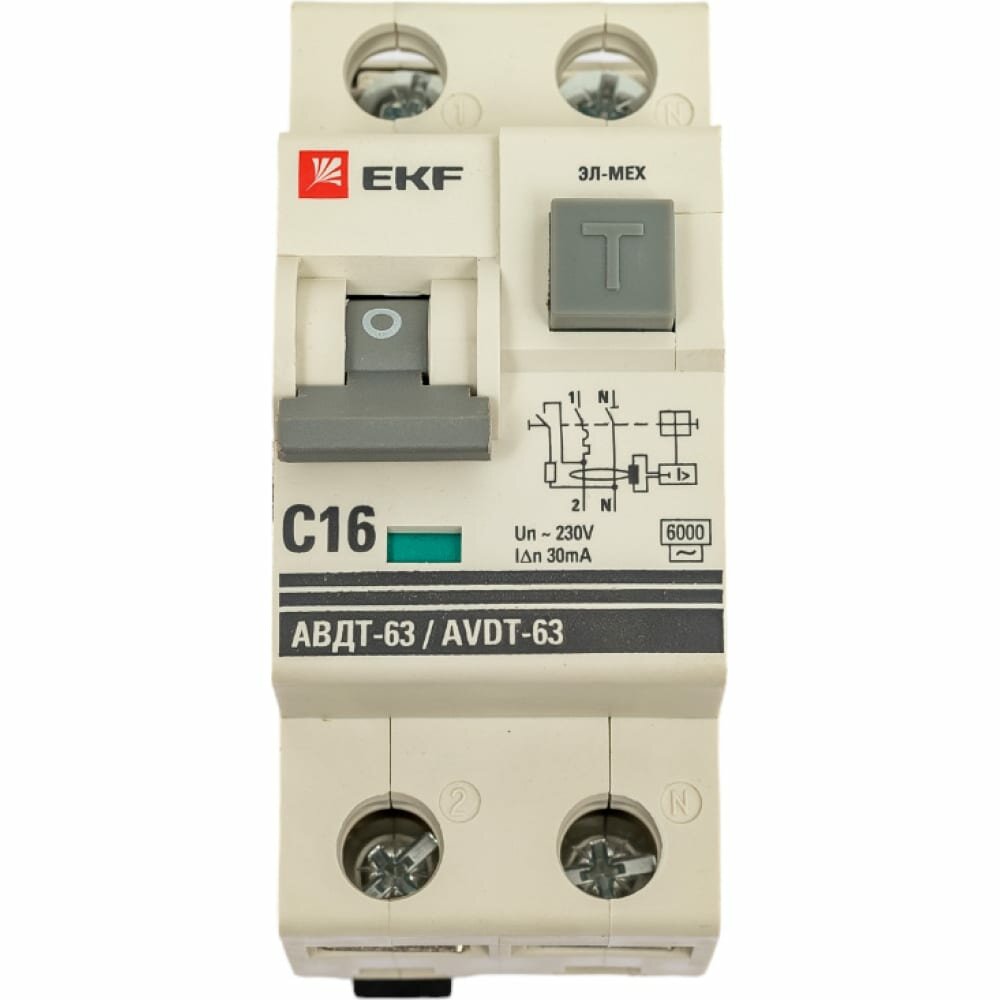 EKF Дифференциальный автом. АВДТ-63 16А 30мА хар-ка C, эл-мех тип AС 6кА PROxima Da63-16-30-ac