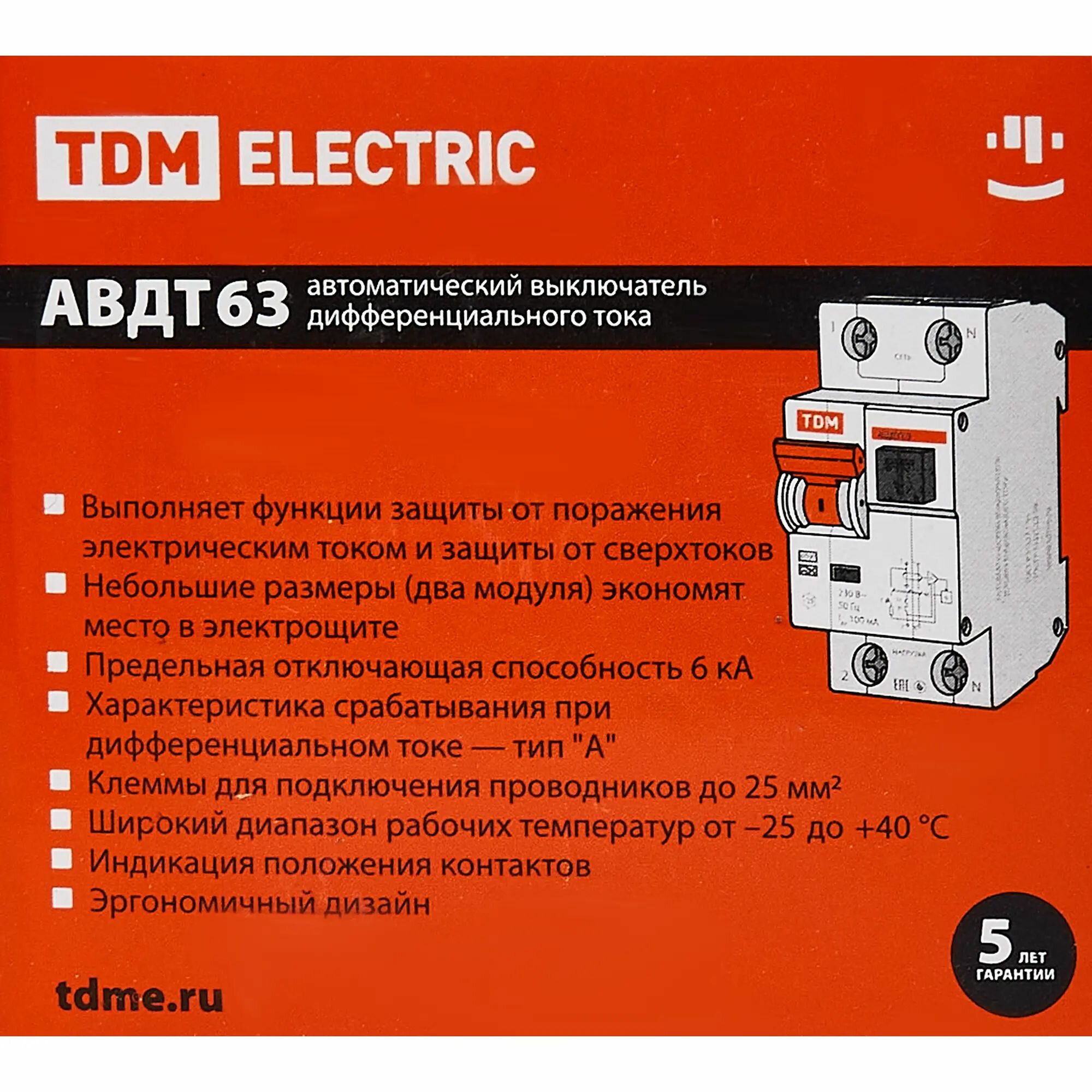 АВДТ 63 4P(3Р+N) C25 100мА 6кА тип А - Автоматический Выключатель Дифференциального тока TDM