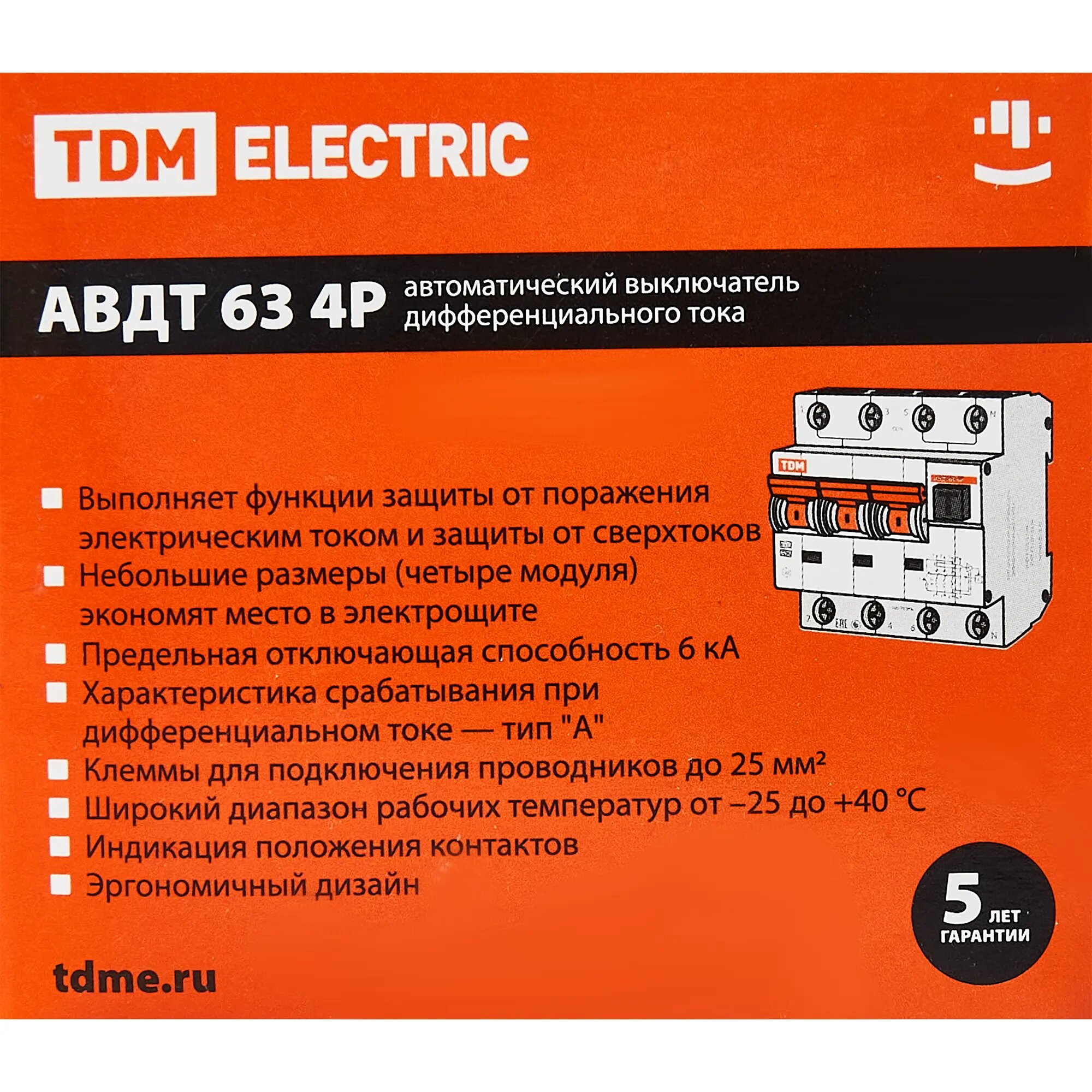 Дифференциальный автомат Tdm Electric АВДТ 63 4P(3Р+N) C25 30мА 6кА тип А (SQ0202-0018)