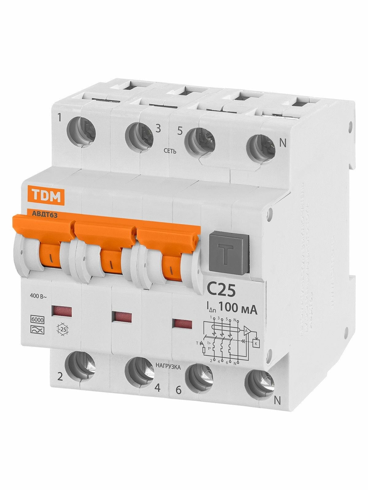 Купить АВДТ 63 4P(3Р+N) C25 100мА 6кА тип А TDM