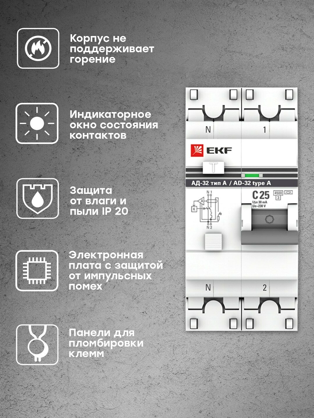 Дифференциальный автомат EKF АД-32 2П C 4.5 кА AC электронный