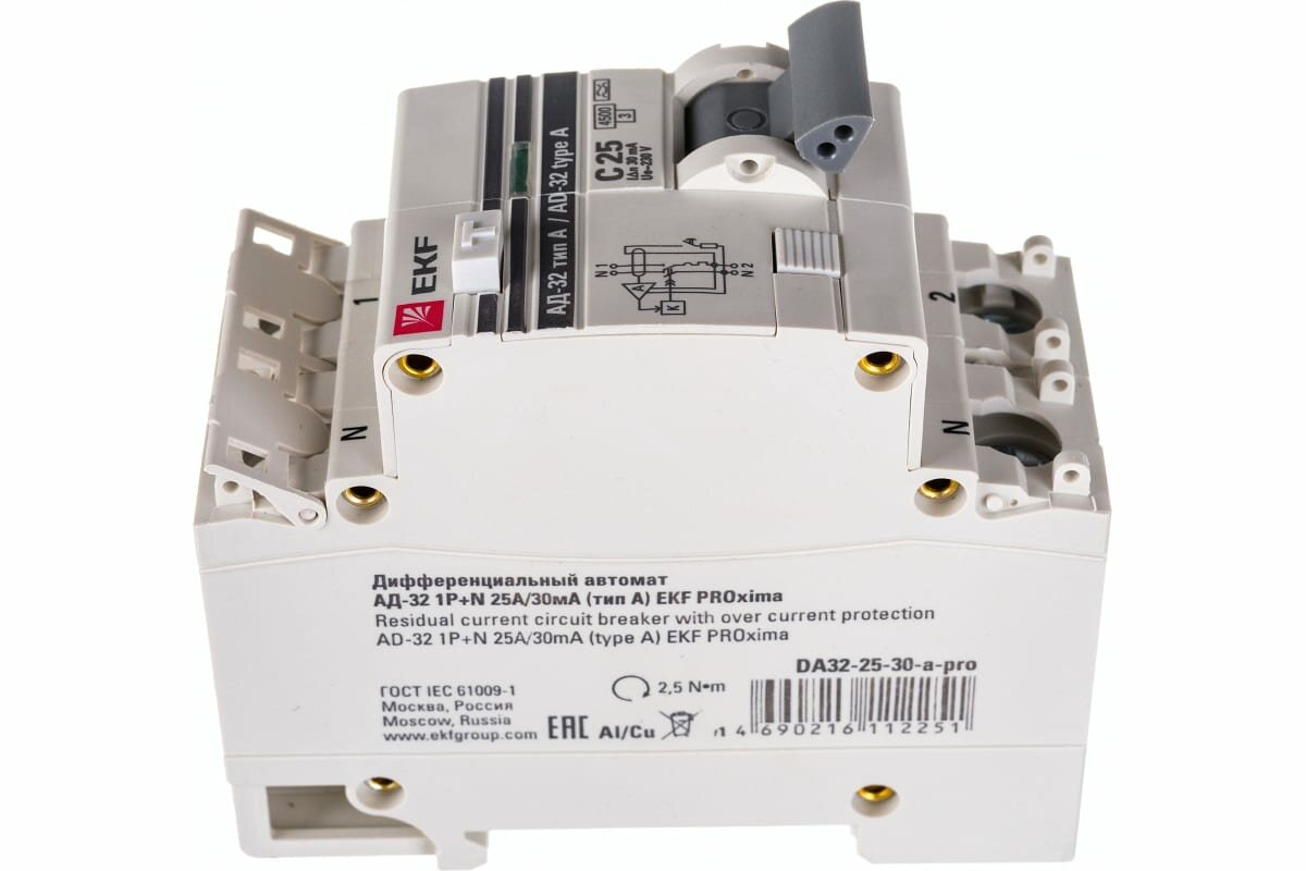 Купить Автомат дифференциальный EKF PROxima АД-32 25А 30 мА 1P+N тип A 4,5 кА (DA32-25-30-a-pro)