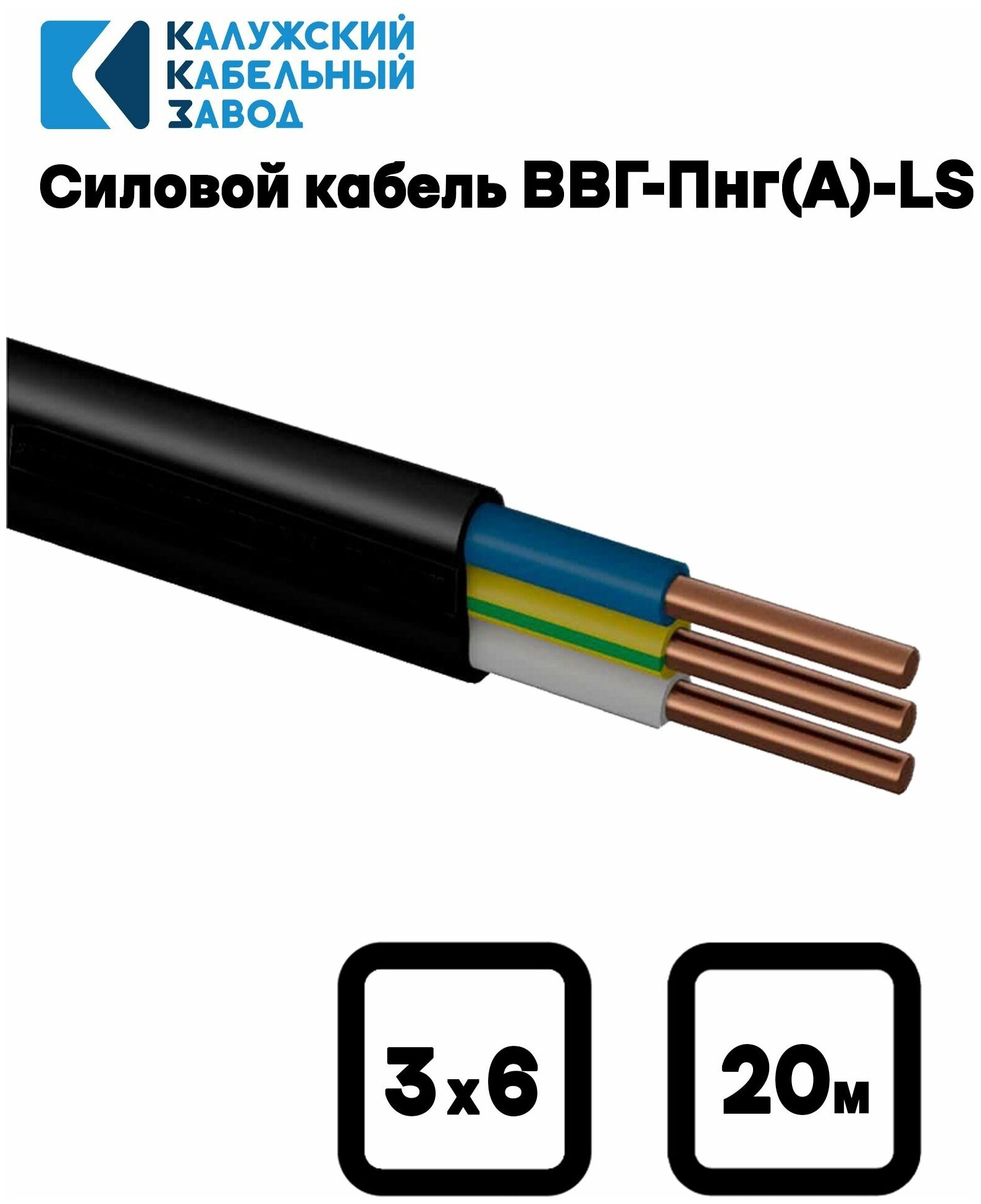 Кабель силовой ВВГ-Пнг(А)-LS 3х6,0 ГОСТ. 20 метров. Кaлyжcкий кабельный зaвoд