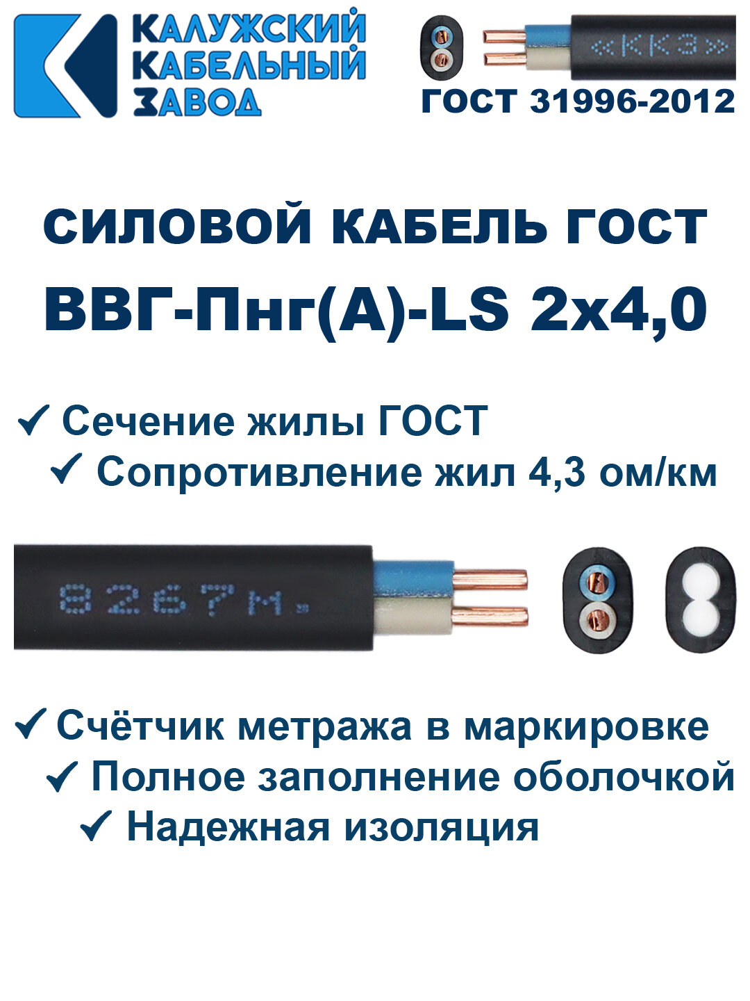 СохранитьКабель силовой ВВГ-Пнг(А)-LS 2х4,0 ГОСТ. 100 метров. Кaлyжcкий кабельный зaвoд интересное:
