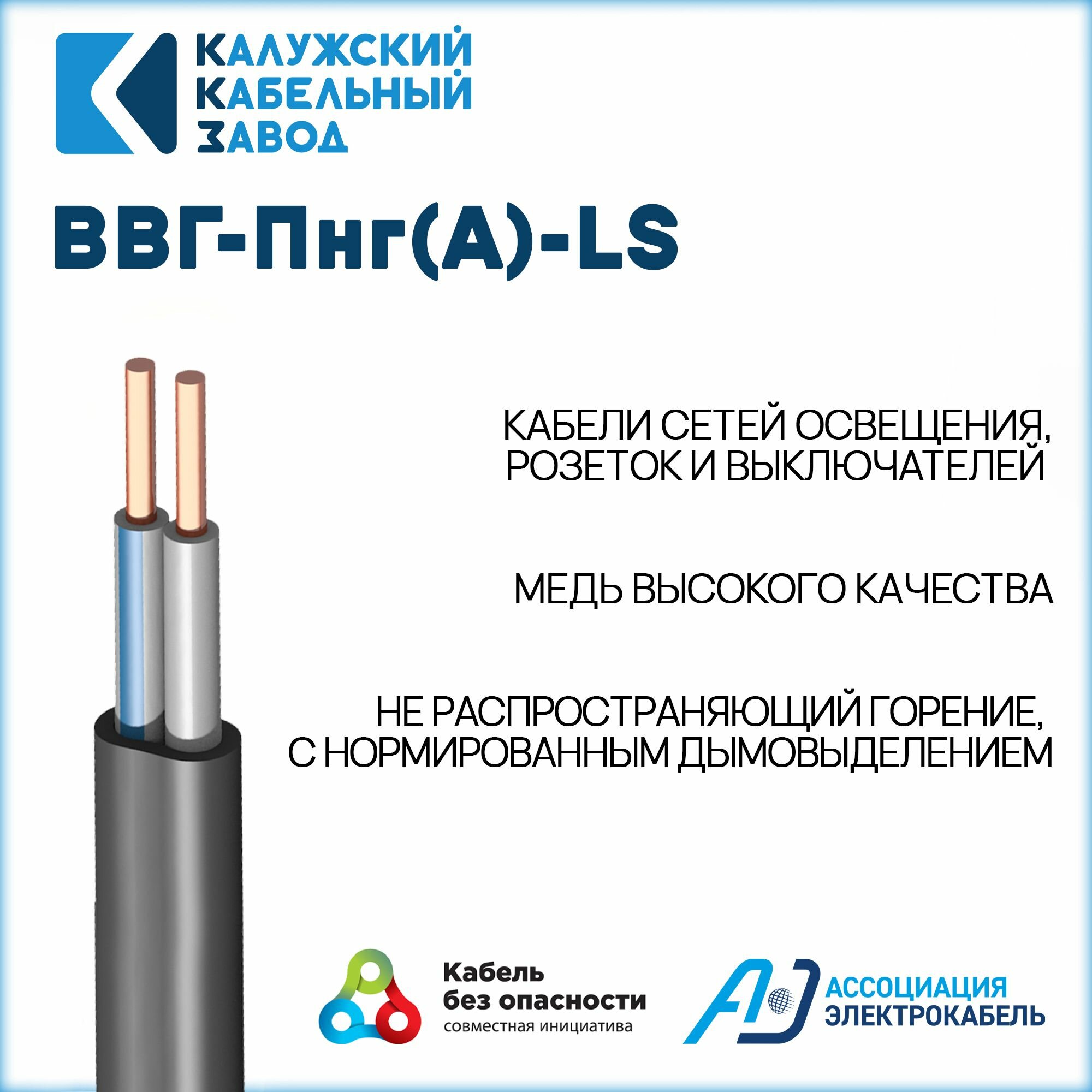 Кабель ВВГ-Пнг(А)-LS 2х2,5 ГОСТ Калужский кабельный завод, 10 метров