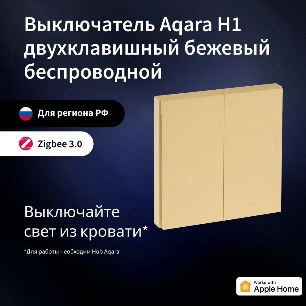 Умный беспроводной выключатель двухклавишный Aqara H1 WRS-R02be, умный дом, бежевый