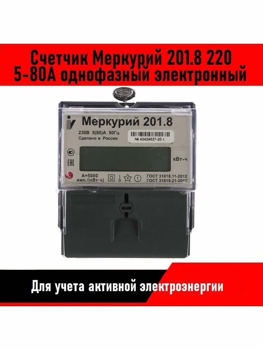 Счётчик электроэнергии Меркурий 201.8 5-80А / 1-фазный / ЖКИ / 1 тариф интересное: