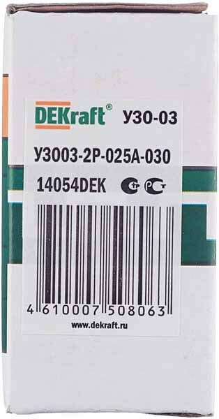 | Дополнительная информация | Устройство защитного отключения DEKraft 2P 25А 30мА тип AC 6кА |