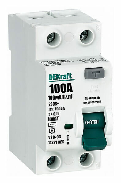 Купить ВДТ DEKraft серии УЗО-03 2P 100A 100mA тип AC 6kA