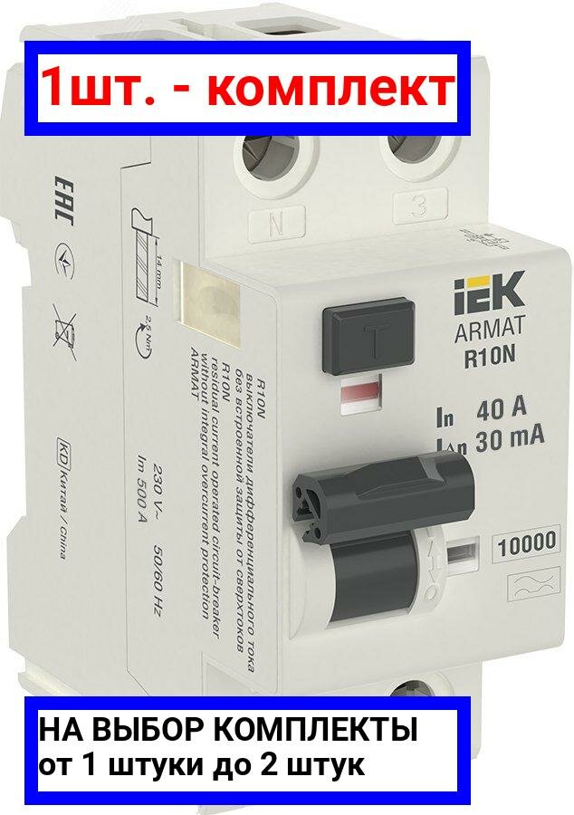 ARMAT Выключатель дифференциального тока R10N (УЗО) 2п 40А 100мА тип A , IEK AR-R10N-2-040A100 (1 шт.)