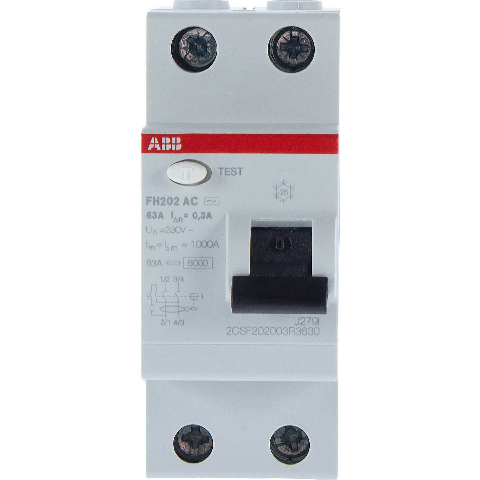 Автоматический выключатель остаточного тока УЗО ABB F202 AC-63/0.3 2P 300 мА 2CSF202001R3630