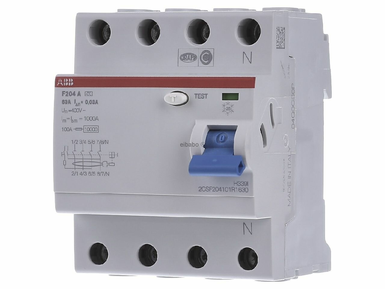 F204 A 63/30 Блок утечки тока 4-полюсный, 63A, 30mA, тип А (УЗО) ABB, 2CSF204101R1630