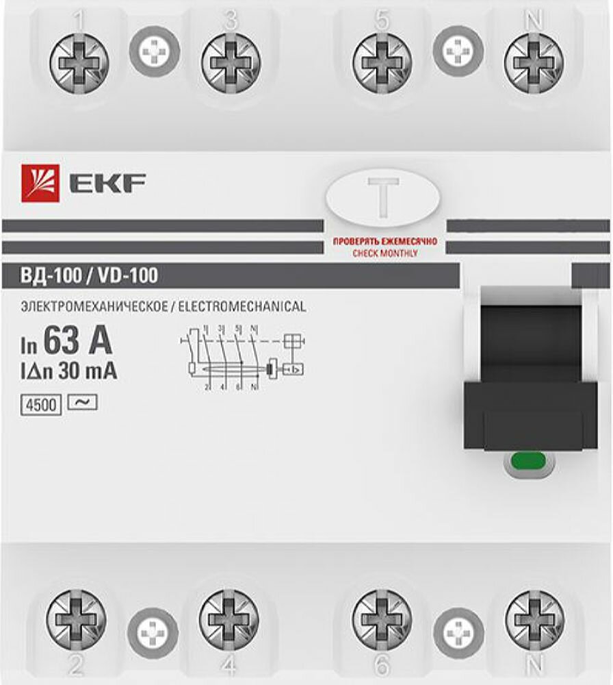 EKF PROxima ВД-100 УЗО 4P 63А/30мА (AC) электромеханическое