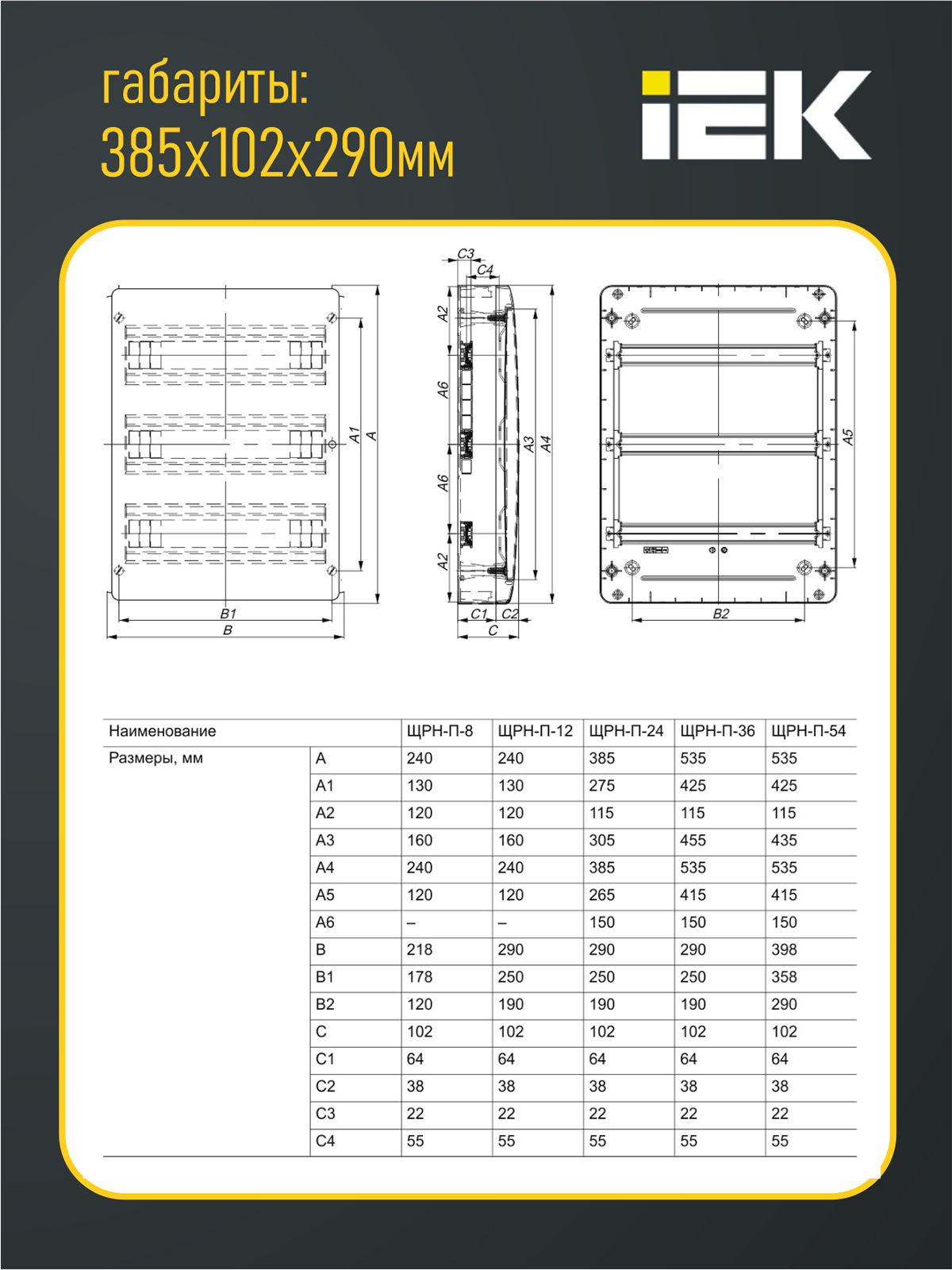 | Дополнительная информация | дверца имеет возможность установки замка; класс электроизоляции II; материал самозатухающий термопластик, обладающий стойкостью к воспламенению при воздействии нагретой до температуры 650°С проволокой (испытание по ГОСТ 27483 (МЭК 60 695-2-1)); рабочие температуры от –25…+60 °С; межосевое расстояние между рядами 150 мм; максимальная высота модульных устройств для установки в щит 53 мм; используемый размер оцинкованной DIN-рейки 35×7,5 мм; щиты изготавливаются согласно стандарта ГОСТ Р 50827 (МЭК 670) |