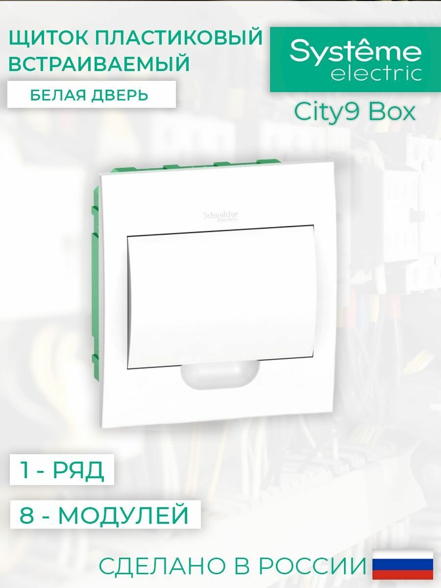 Купить Systeme Electric City9Box щит встраиваемый с белой дверью 1ряд/8мод (арт. EZ9E108P2FRU)