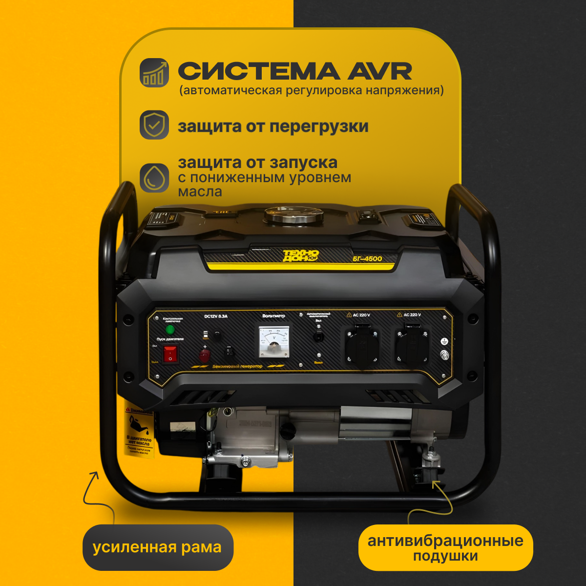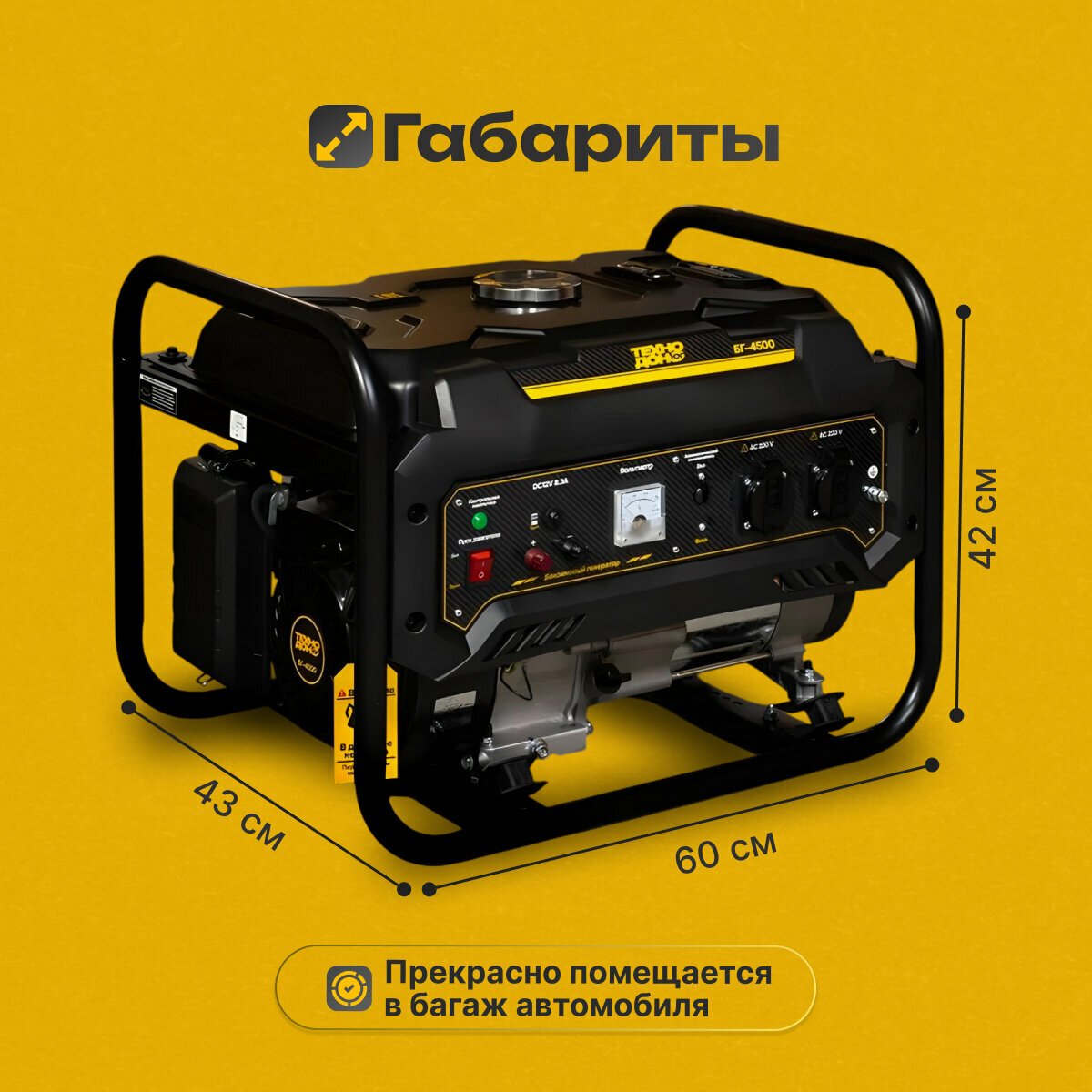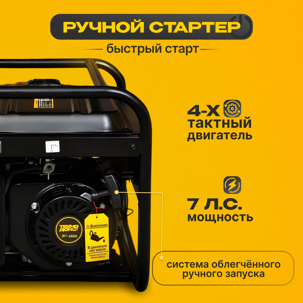 Генератор бензиновый Техно-Дон БГ4500 220В, 12В, 50 Гц, 7 л.с Ручной стартер Электростанция для Дома интересное: