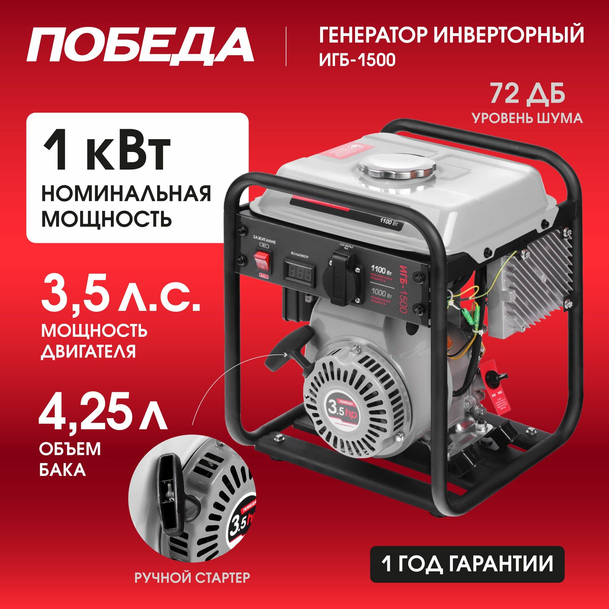 Победа Генератор инверторный 1.1 кВт 3.5 л. с. ИГБ 1500 475102215