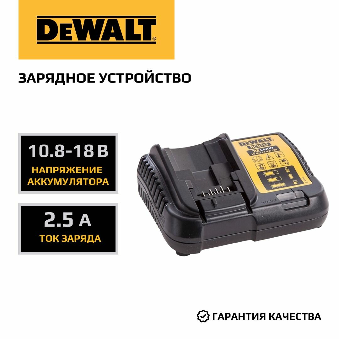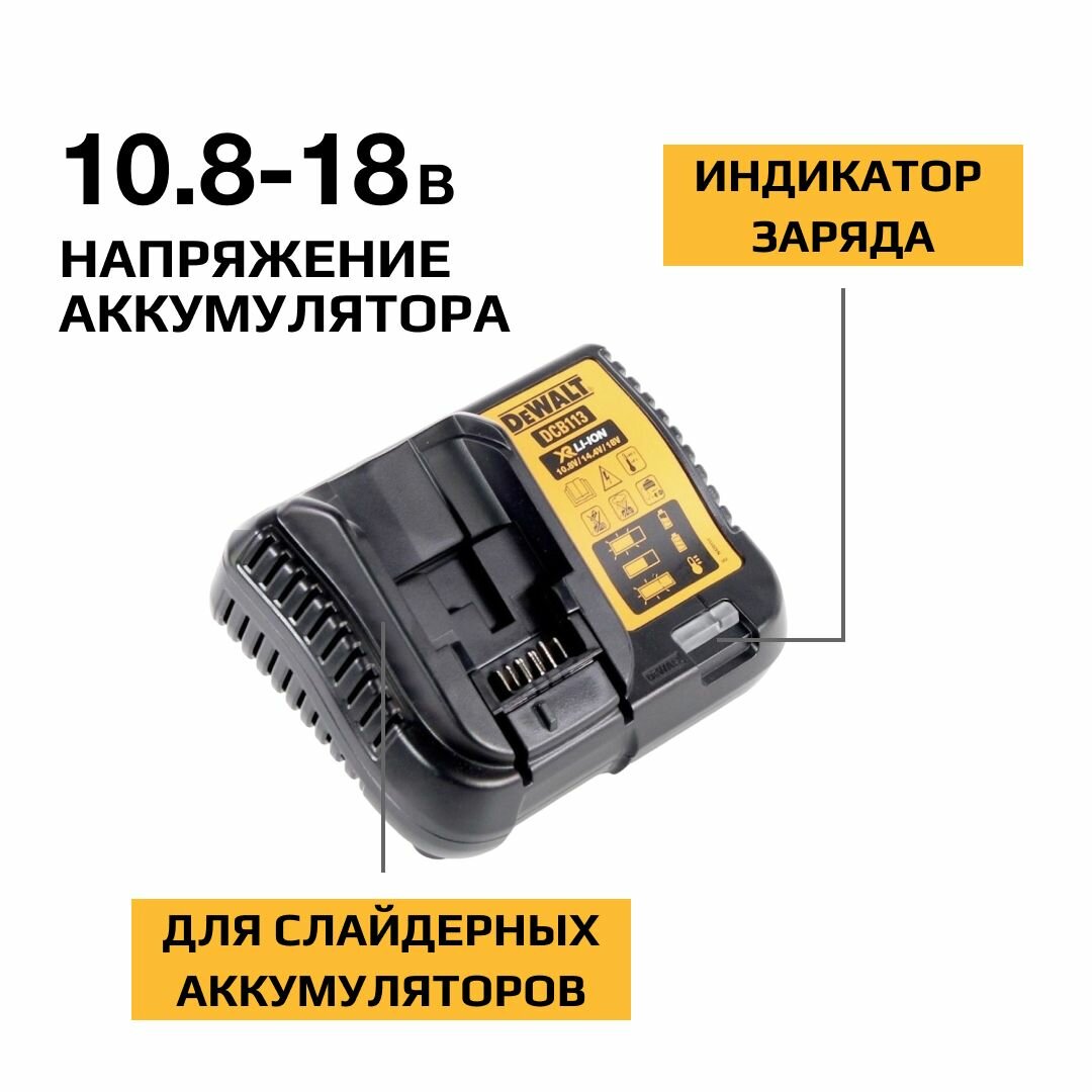 Зарядное устройство DEWALT, 10.8-18 В, 2.5 A, DCB113