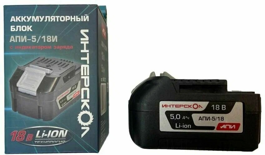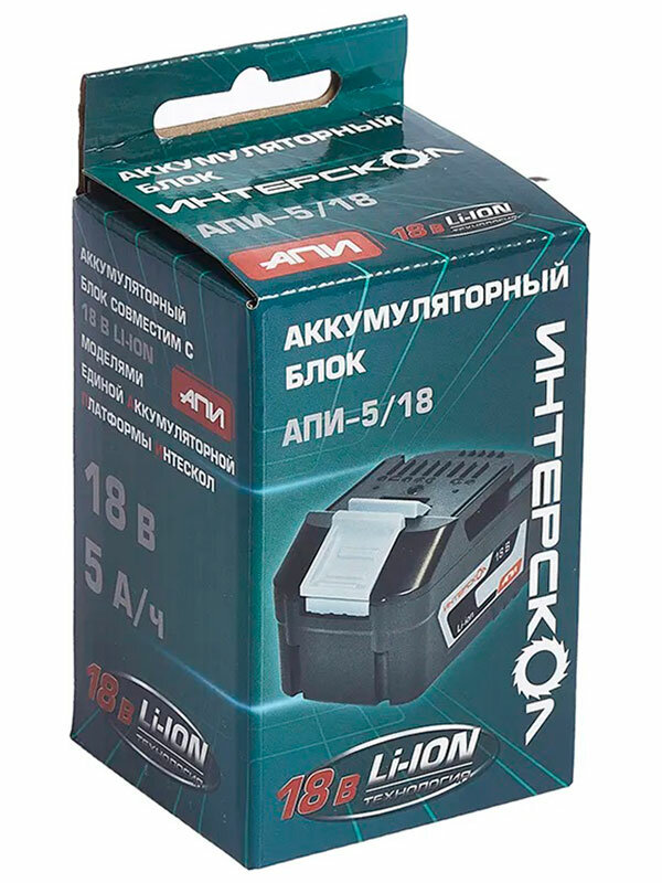 | Дополнительная информация | батарея аккумуляторная ИНТЕРСКОЛ АПИ-5/18И, 5А/ч, 18В, Li-ion с инд., 2400.122 - 1 шт |