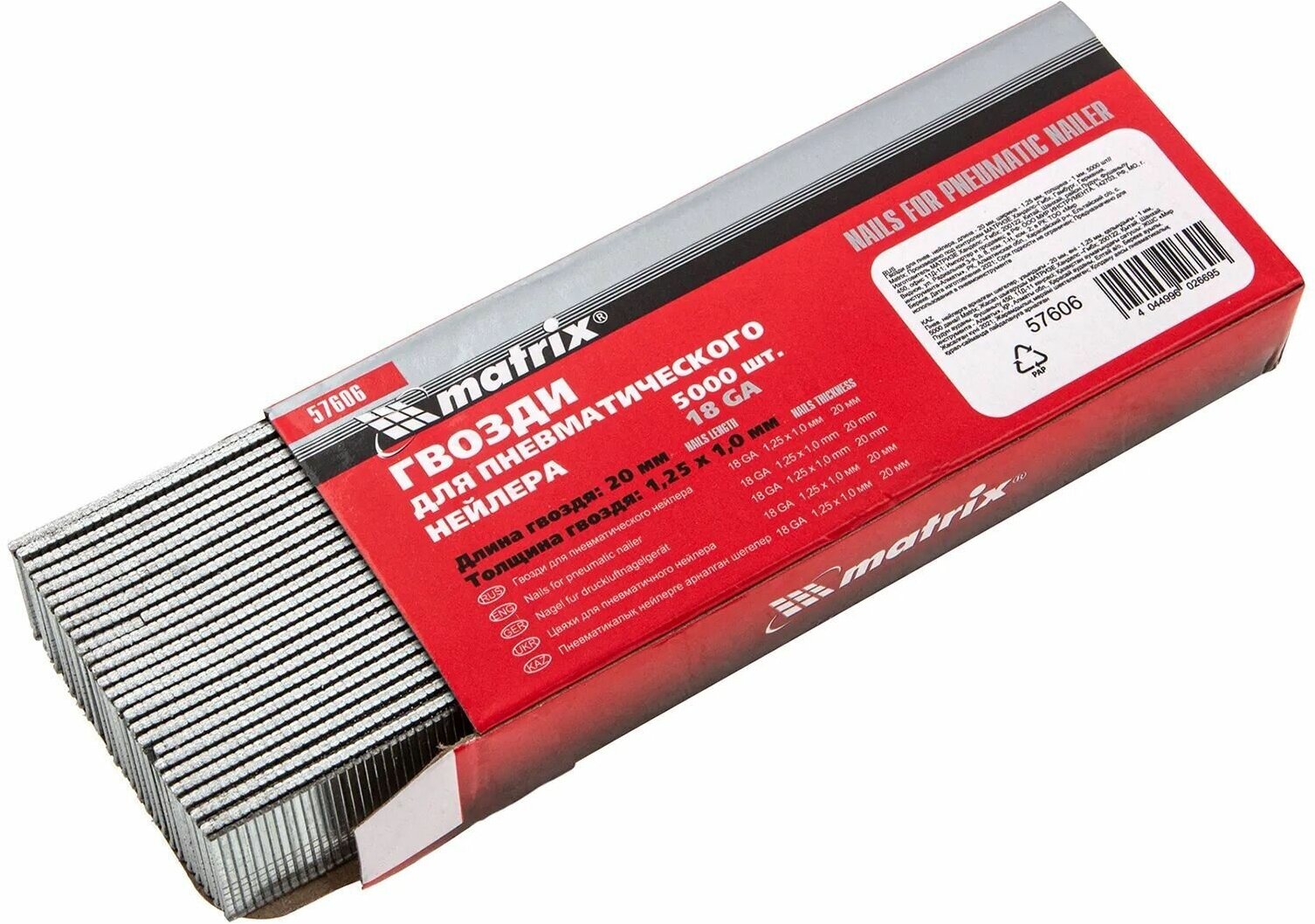Гвозди 18GA для пневматического нейлера, длина 20 мм, ширина 1.25 мм, толщина 1 мм, 5000 шт Matrix
