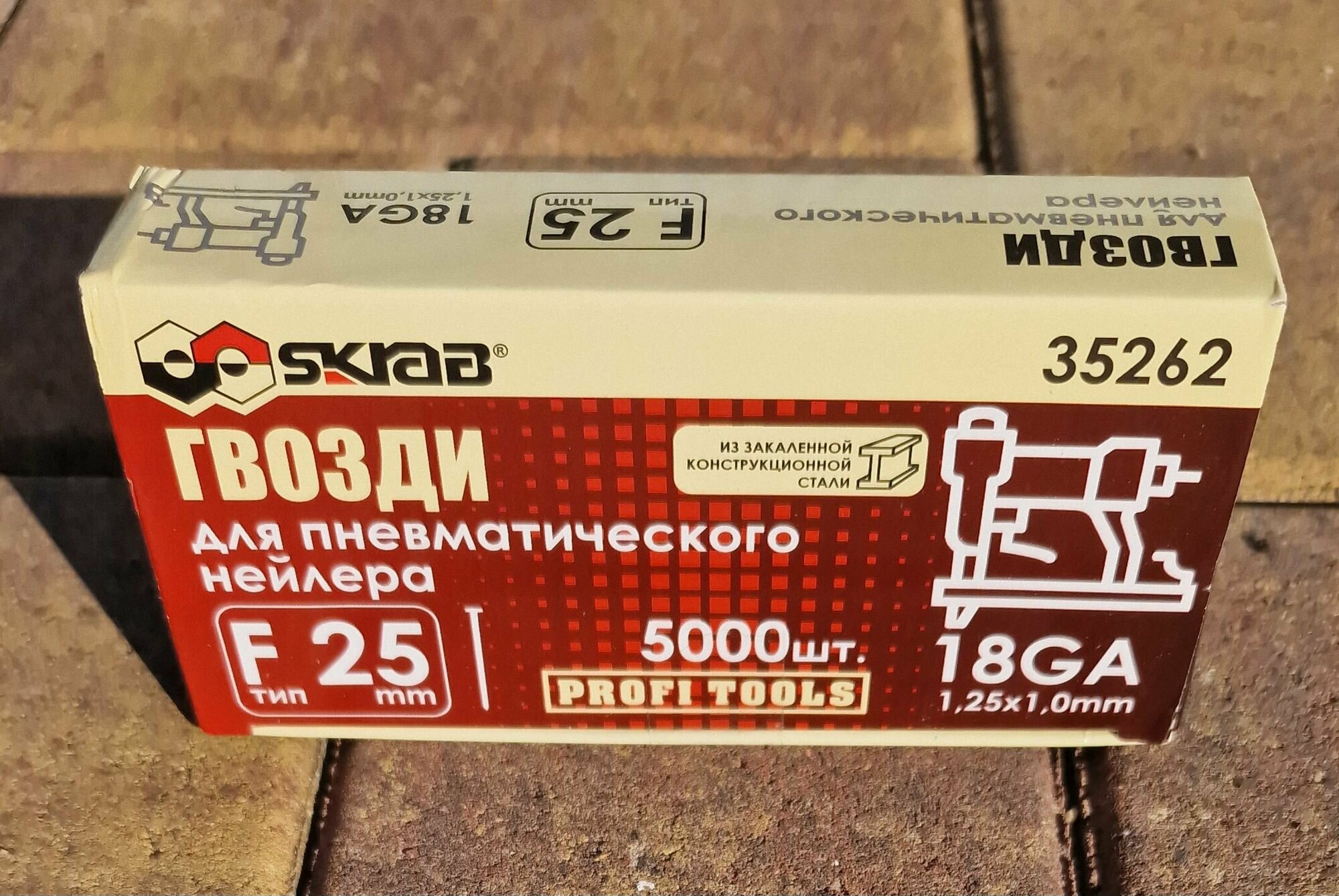 Купить Гвозди Skrab 35262 для пневматического нейлера F 25 мм., 18GA 1,25 х 1 мм. / 5000 шт.