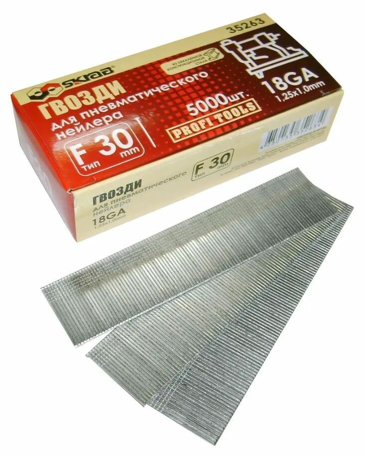 Гвозди для пневматического нейлера F30 мм 18GA 1.25 х 1.0 мм 5000 шт Skrab 35263