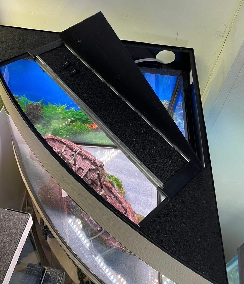 Аквариум 120 литров Угловой AquariumBest с тумбой, Беленый дуб (58х58х57 см) интересное: