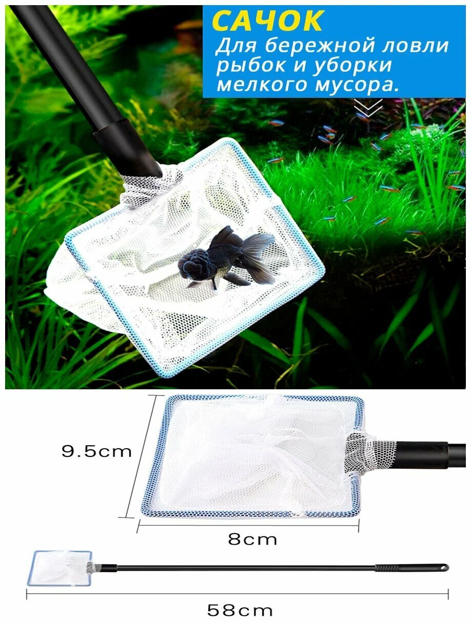 Homefish Набор для очистки аквариума, телескопический, 5 в 1