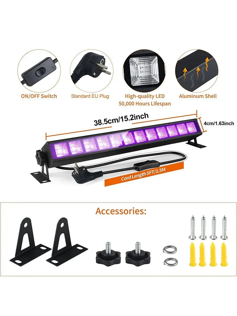 Светодиодный УФ светильник LED 36W 40 ламп интересное: