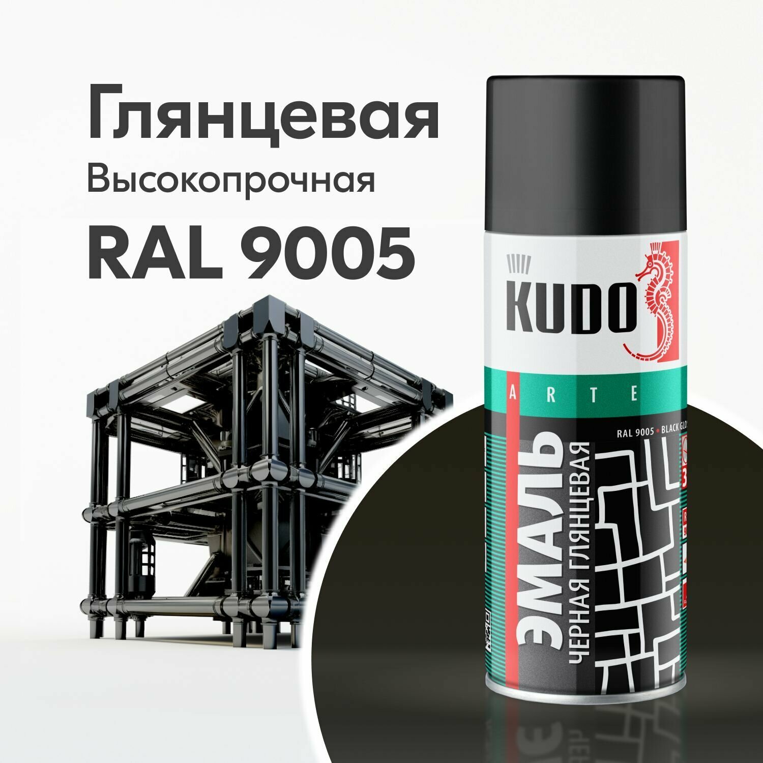 Эмаль KUDO глянцевая чёрная, быстросохнущая, универсальная 520мл