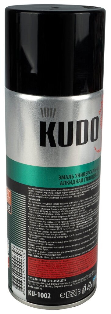 Ниже Вы можете прочитать отзывы на Кудо KU-1002 эмаль аэрозольная черная глянцевая (0,52л) / KUDO KU-1002 эмаль аэрозольная алкидная черная глянцевая (0,52л), ознакомится с подробными характеристиками, посмотреть интересные обзоры и фотографии на Кудо KU-1002 эмаль аэрозольная черная глянцевая (0,52л) / KUDO KU-1002 эмаль аэрозольная алкидная черная глянцевая (0,52л).