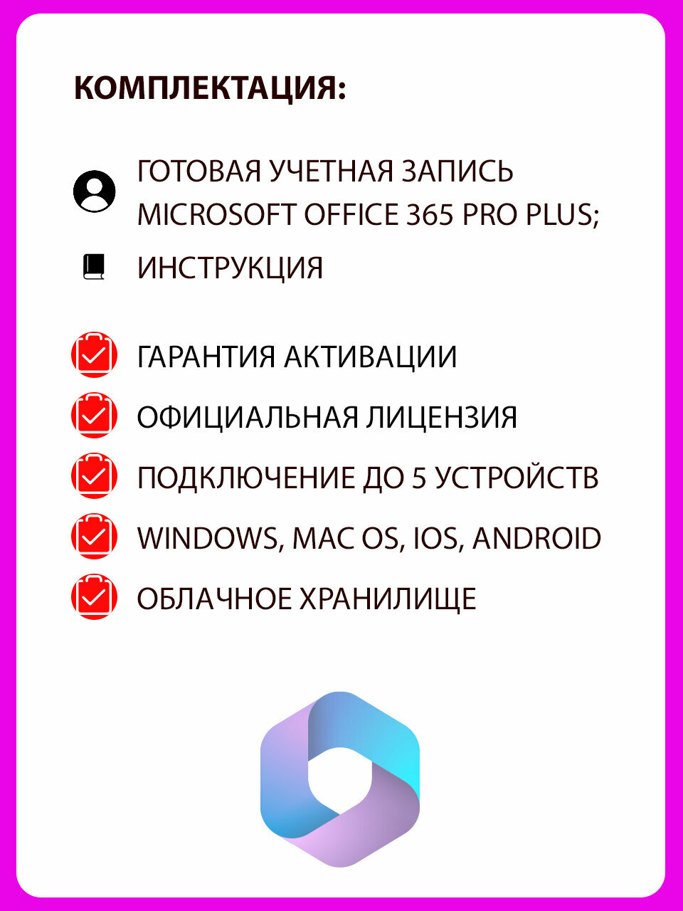 Купить Microsoft Office 365 - бессрочный, мультиязычный аккаунт, 100 ГБ One Drive